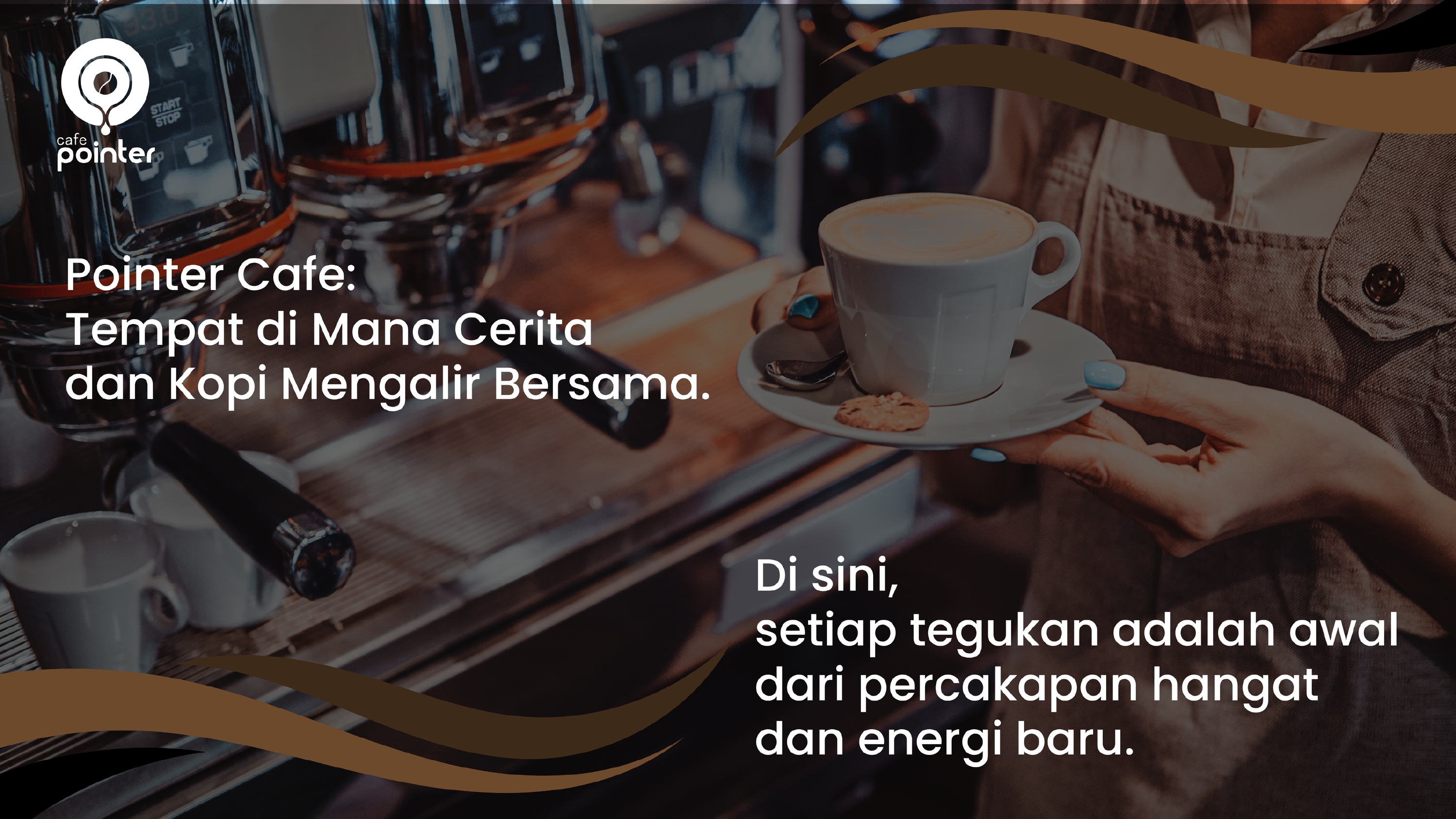 Logo ini terinspirasi dari kopi yang dituang dari satu gelas ke gelas lainnya, aliran kopi yang dituang ditafsirkan sebagai proses, kelancaran, dan kelimpahan. Elemen-elemen ini digabungkan dan disederhanakan untuk membuat logo yang unik dan representatif untuk pointer kafe.